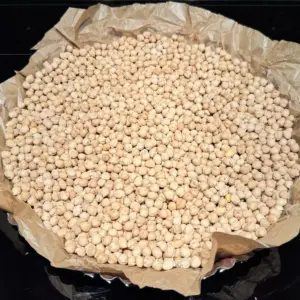 - Den Teig mit Backpapier belegen und mit beispielsweise Kichererbsen (wie abgebildet) beschweren. Den Boden etwa 10 bis 15 Minuten blind backen.